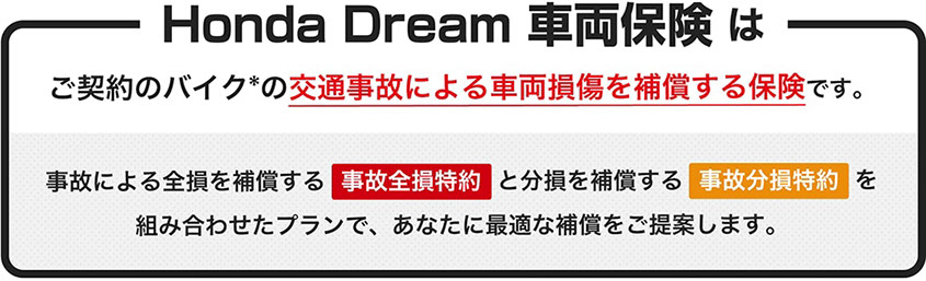 Honda Dream だけの安心と信頼のバイク保険をご検討ください。